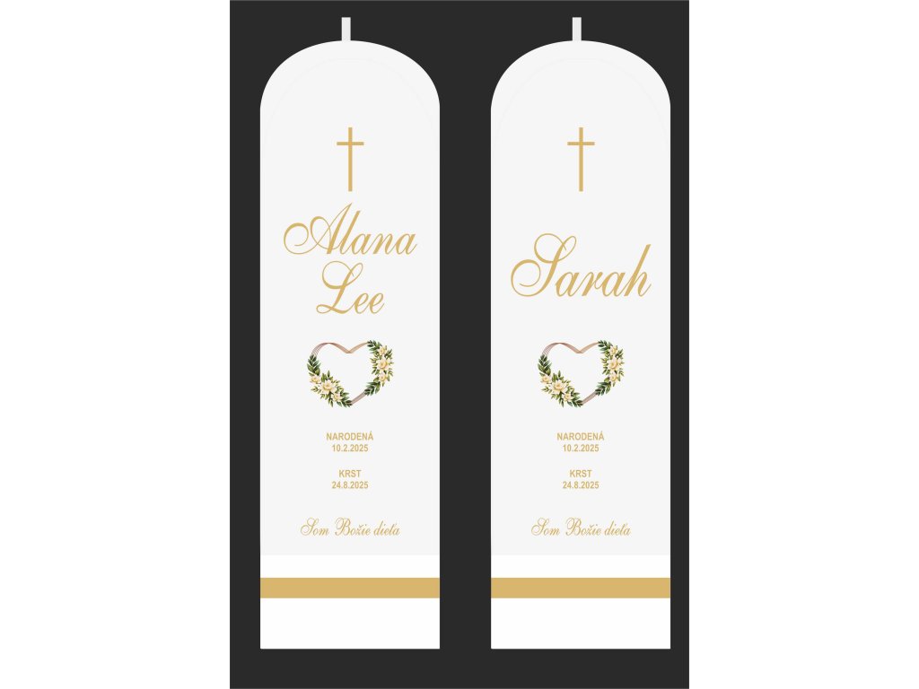 Na sviečke je uvedené meno, dátum narodenia a krstu, obrázky krížika a kvetinového srdca .
