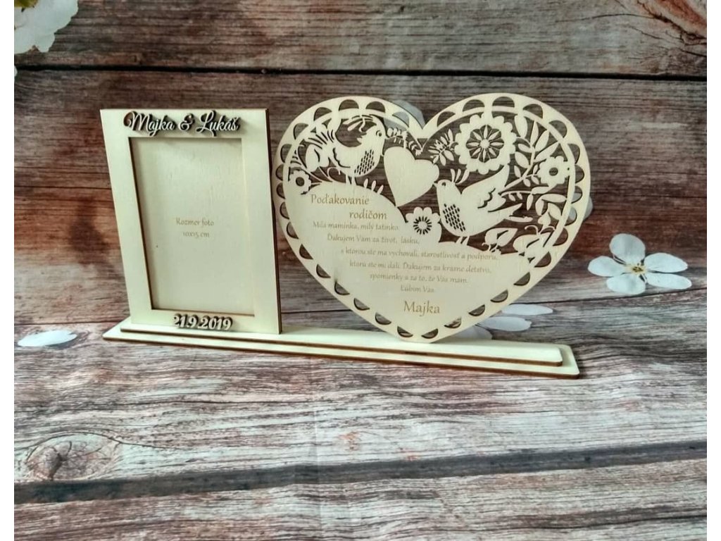 Text poďakovania: Poďakovanie rodičom Milá maminka, milý tatinko. Ďakujem Vám za život, lásku, s ktorou ste ma vychovali, starostlivosť a podporu, ktorú ste mi dali. Ďakujem za krásne detstvo, spomienky a zato, že Vás mám MenoDodatočné parametre