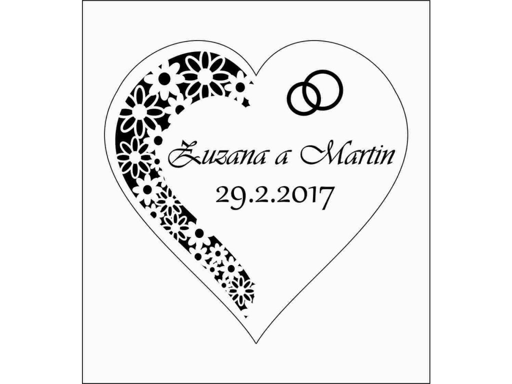 Srdiečko obsahuje mená, dátum, obrázok a poďakovanie.