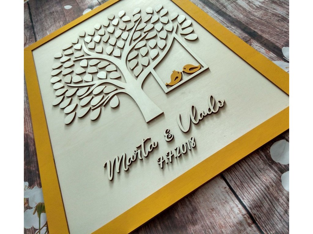 čiastočne lepené - nalepíme strom, vtáčiky, mená a dátum svadby ( v cene rámu s podkladom)